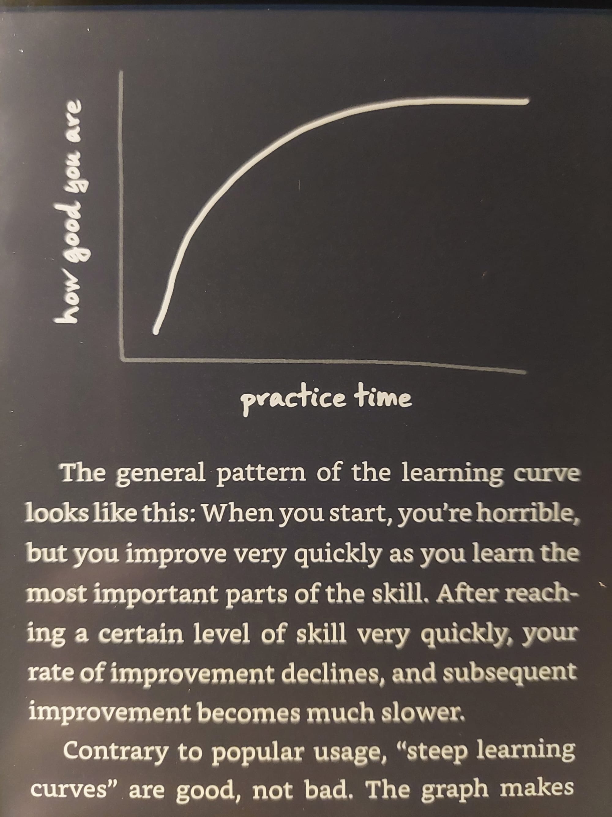 Le plus étonnant, ça a été la vitesse à laquelle je suis passé de "complètement incompétent" à "raisonnablement bon" → une énorme asymétrie entre l'effort fourni et le résultat obtenu.